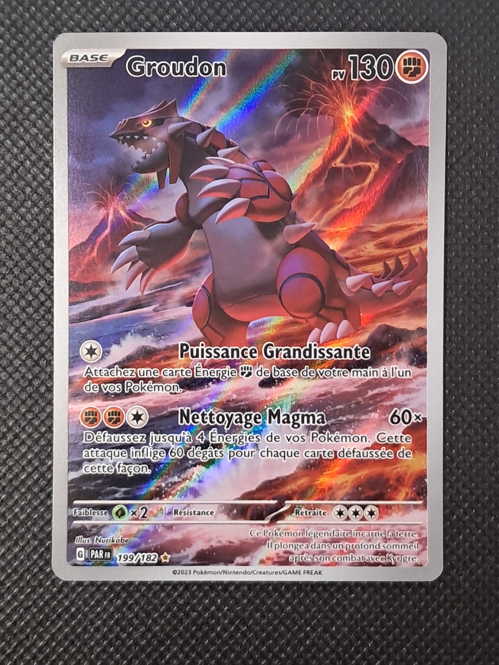 GroudonPar Eric Azembourg / décembre 18, 2025 Détails de la carteExtension199/182SérieFaille ParadoxRaretérareLanguefrançaisNote10Date de sortie2023Numéro de certificationCERT-2025-000305QR Code de l'annonce